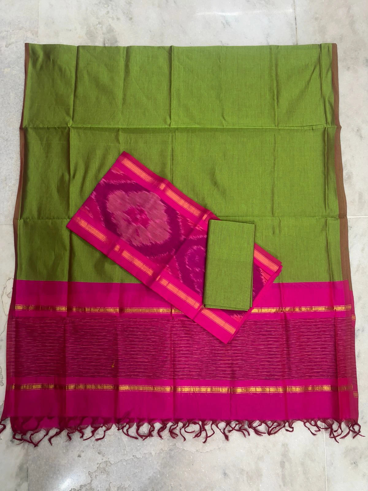 Top: 2.5 meters of beautifully woven pochampally sico fabric.
