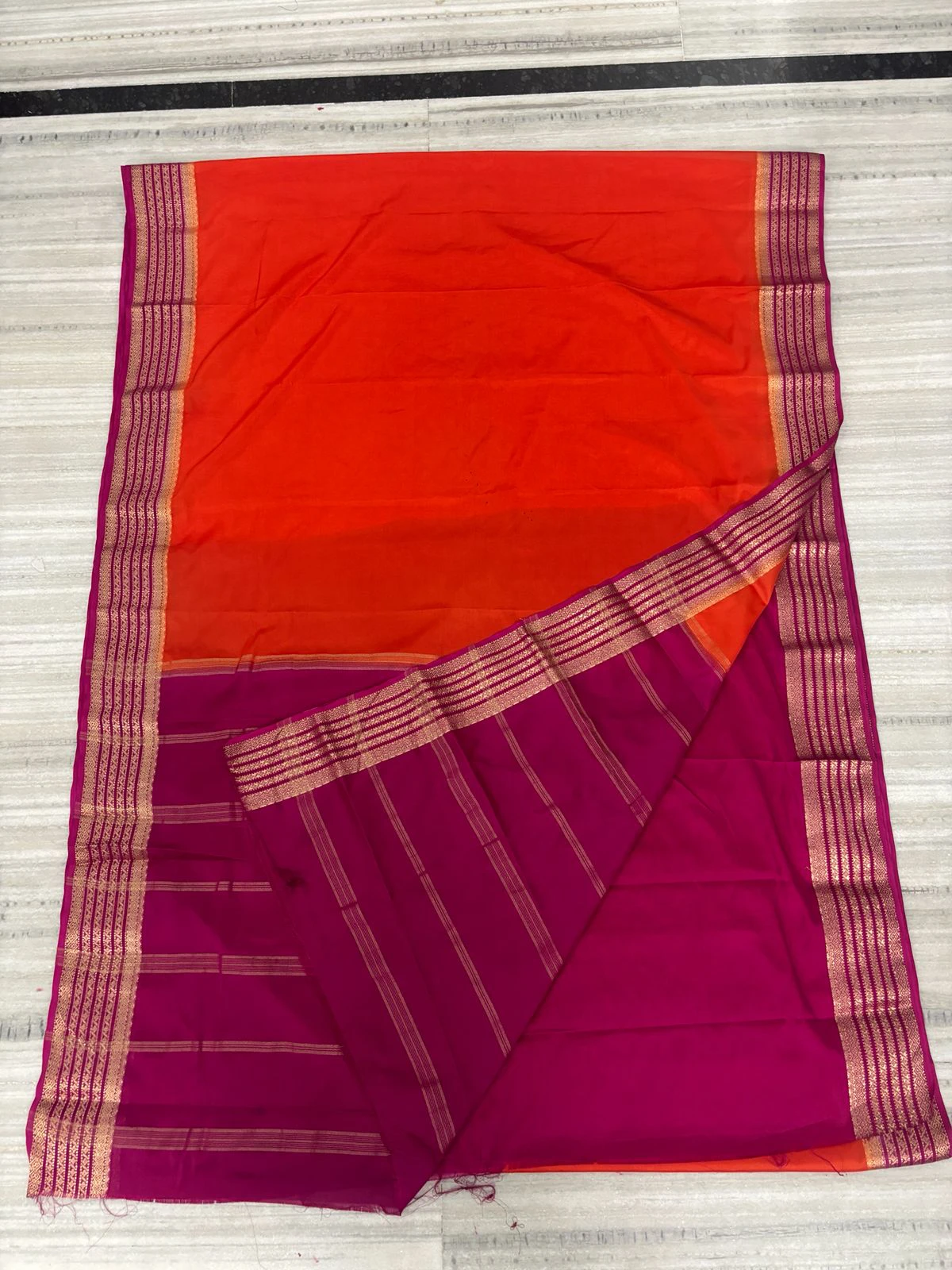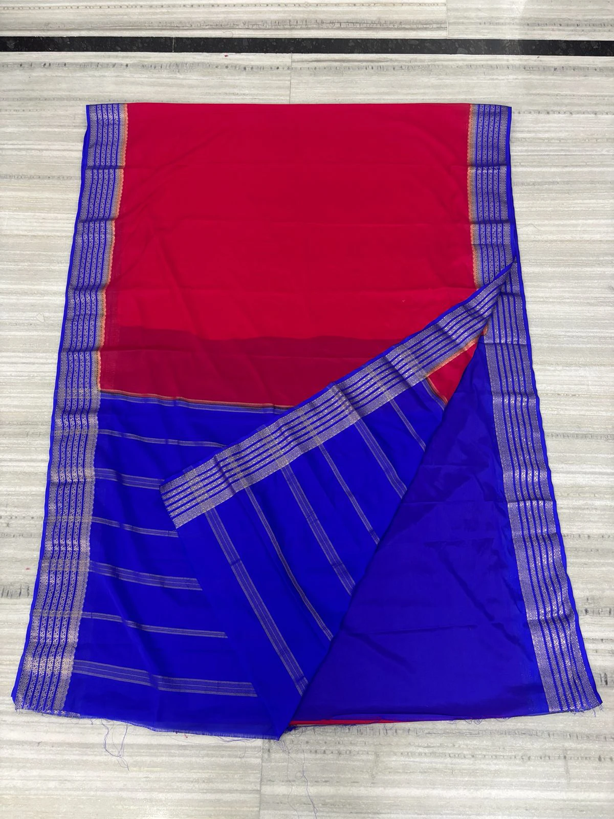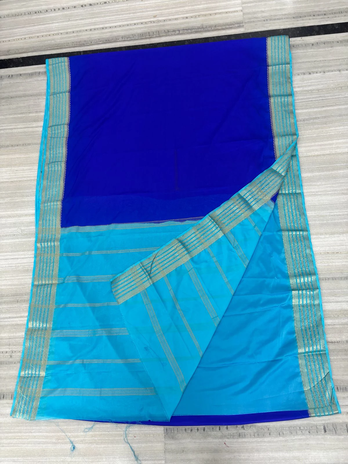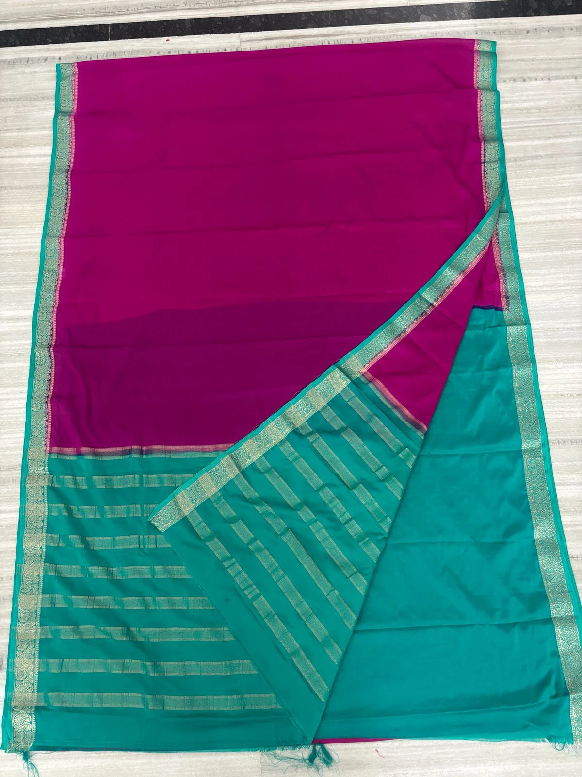 Semi Mysore Crape Silk Saree with contrast chit palluu and blouse
