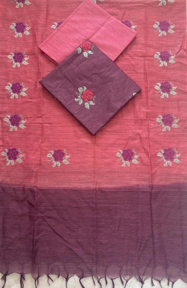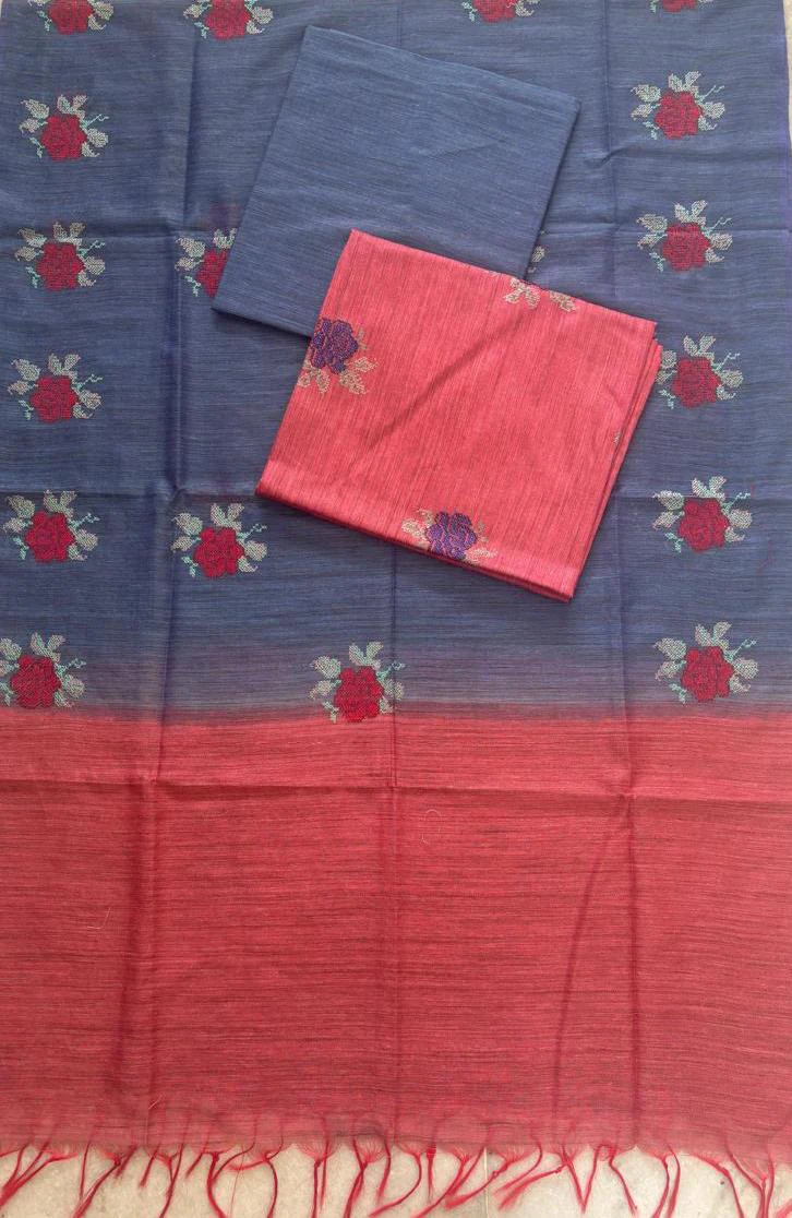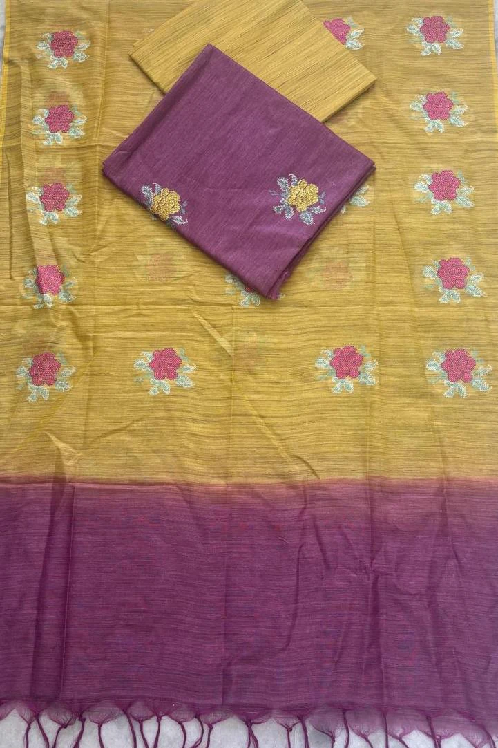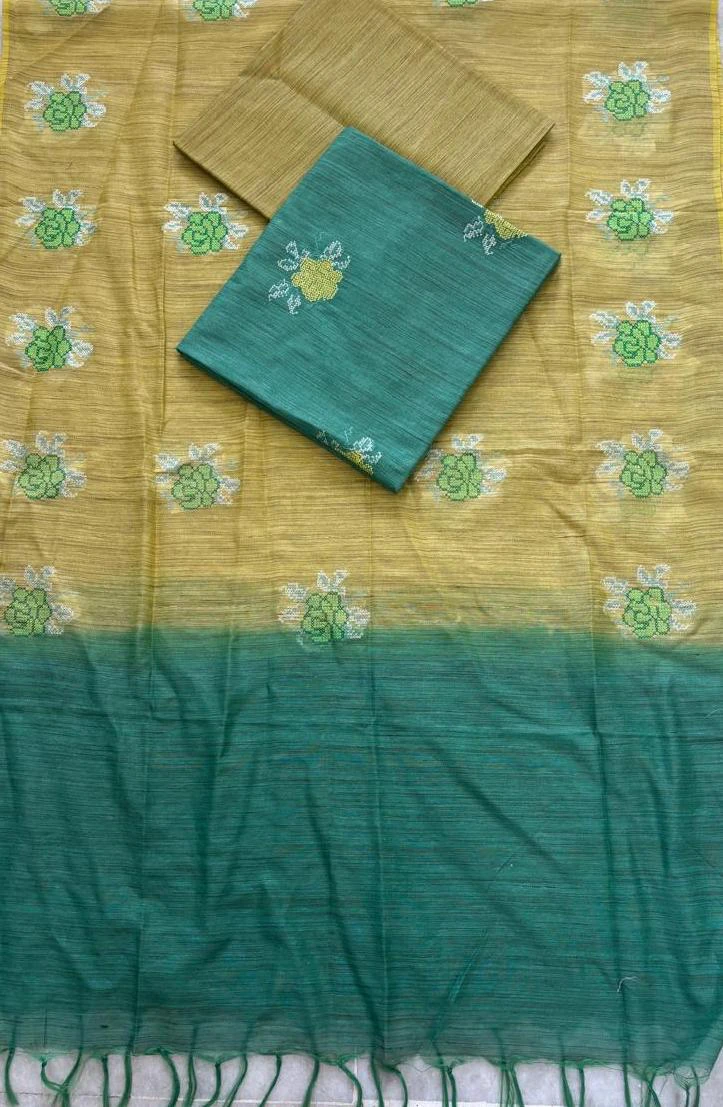 Semi Tussar dress material offers a rich silk-like texture with a natural finish, combining elegance and comfort.