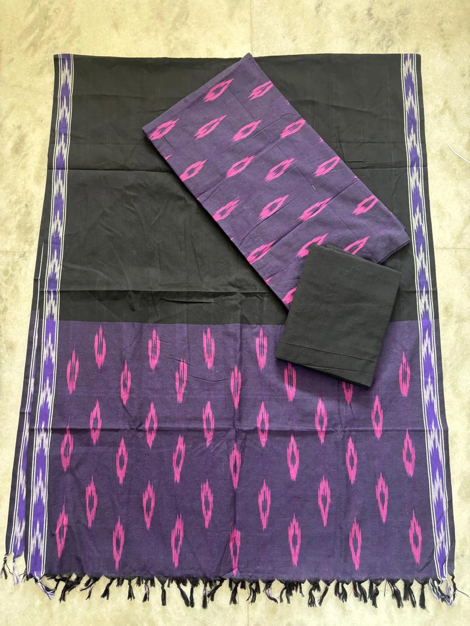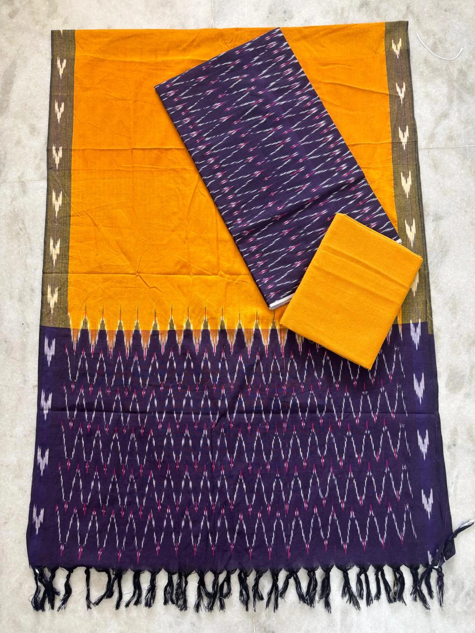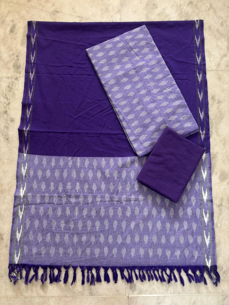 Single ikkath 3 piece Dress Materials beautifully crafted unstitched set featuring a top, bottom, and dupatta with traditional ikkat patterns. Made from soft, breathable fabric, it offers a perfect blend of comfort and timeless ethnic style for everyday and occasional wear.