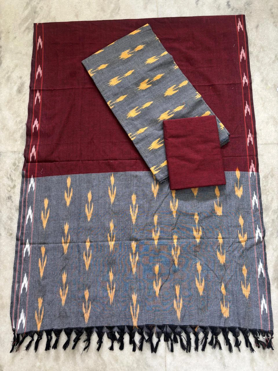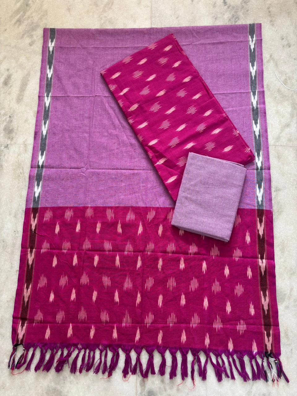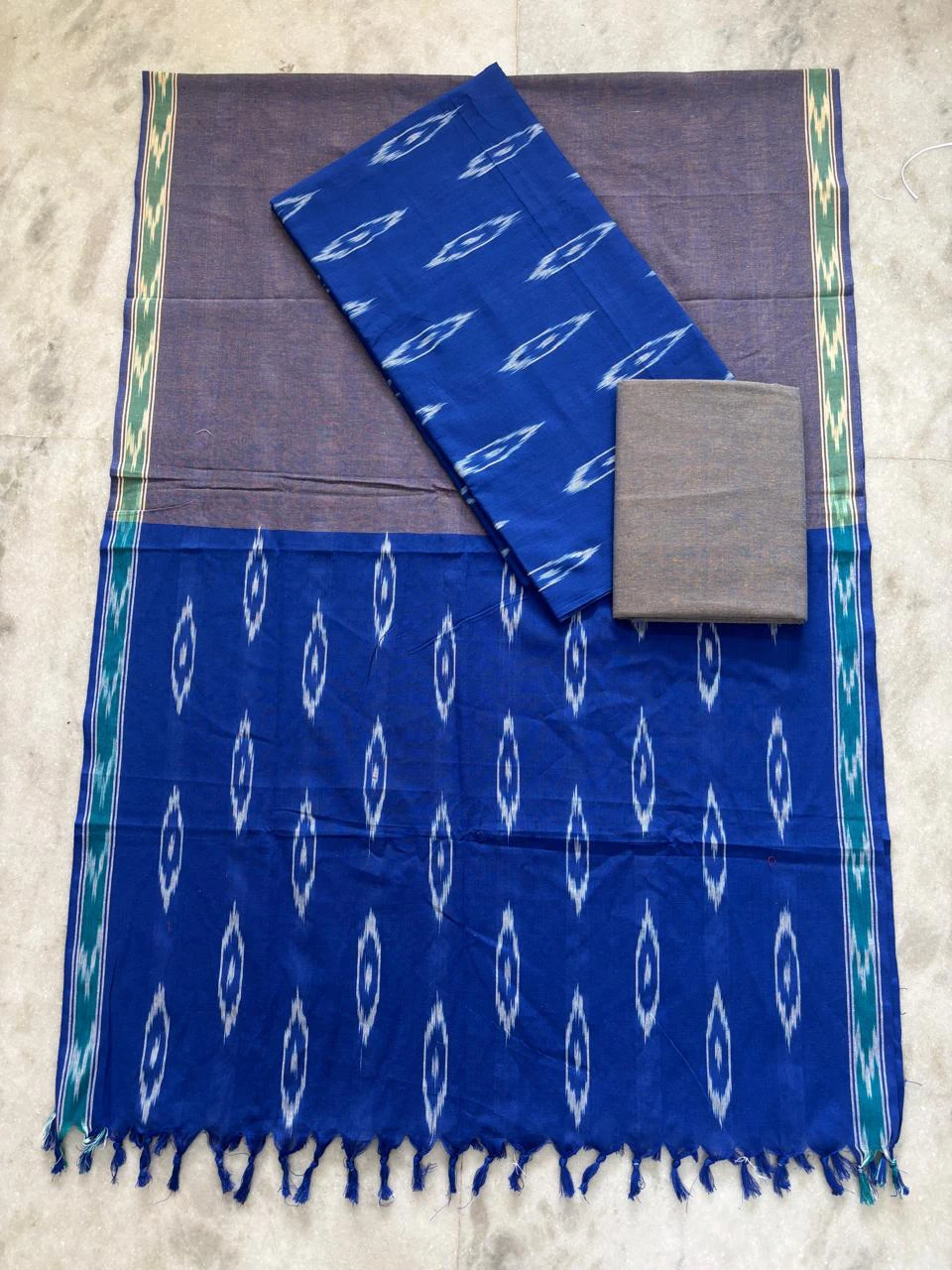 Single ikkath 3 piece Dress Materials beautifully crafted unstitched set featuring a top, bottom, and dupatta with traditional ikkat patterns. Made from soft, breathable fabric, it offers a perfect blend of comfort and timeless ethnic style for everyday and occasional wear.